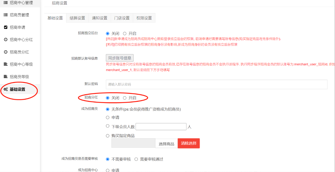 3.设置成为招商员的条件与成为招商员是否需要审核。