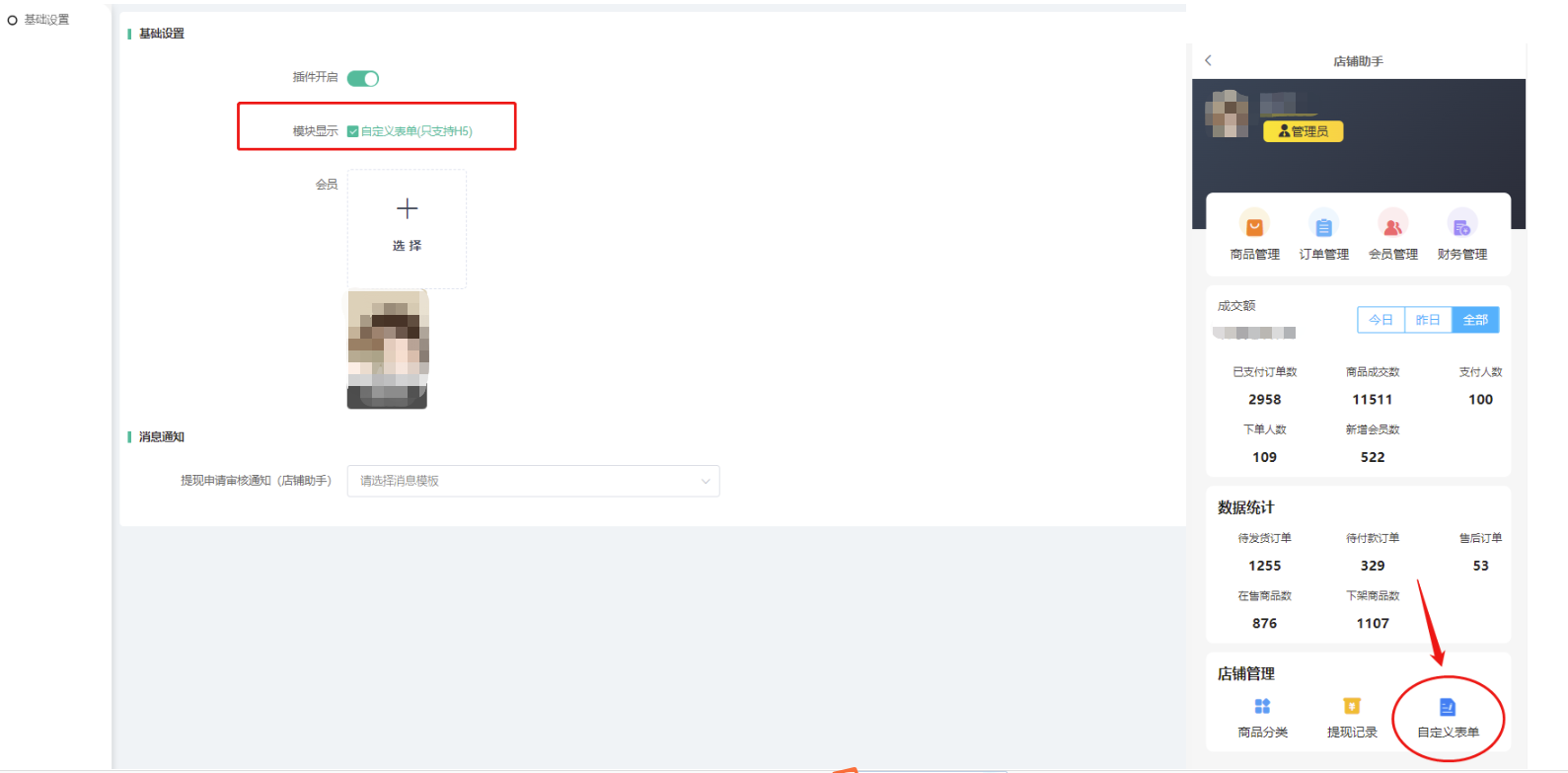 店铺助手开启自定义表单(仅支持H5),店铺助手管理员可以查看。更多详情可在知识库搜索“店铺助手”