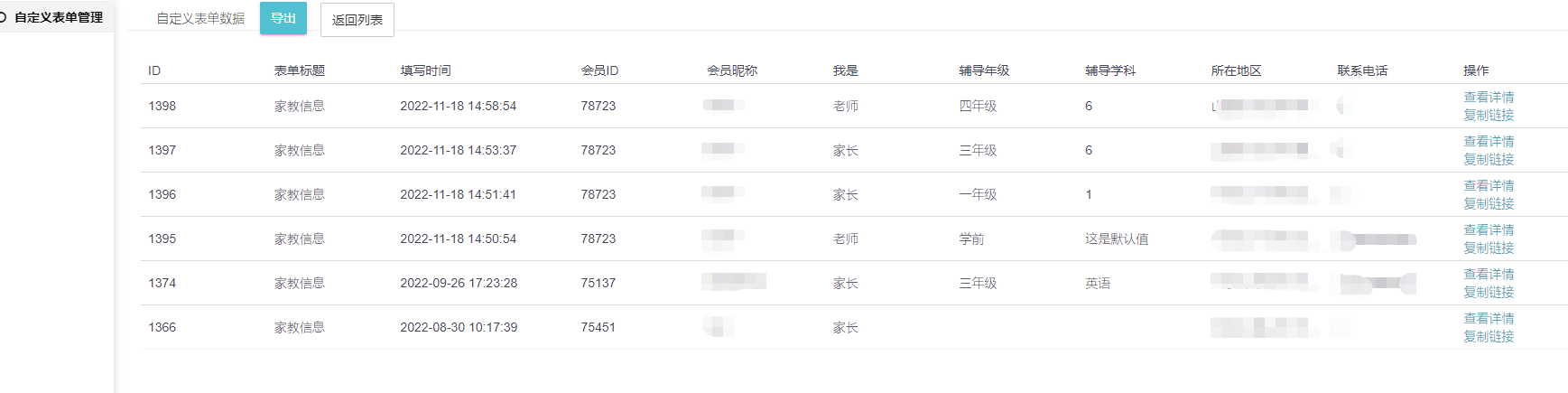 查看每个表单数据,再次修改表单内容,支持删除;支持一键复制小程序路径、H5页面链接,放置装修页面,方便用户快捷点击进入指定表单页面。