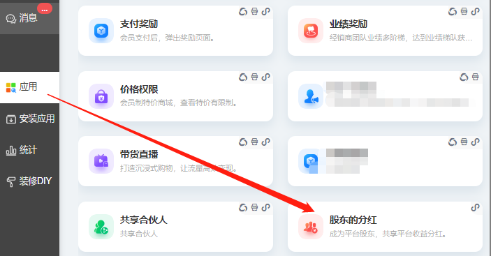 股东分红支持自定义名称,在应用和前端推广中心查看会显示自定义后的名称,